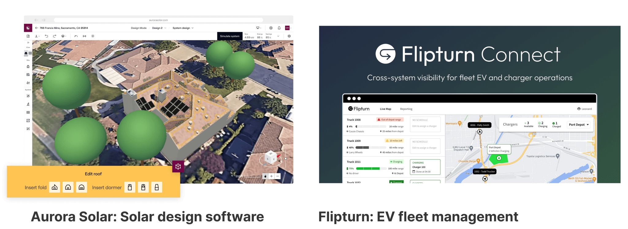 Examples: Aurora Solar builds solar system design software and Flipturn builds EV fleet management software. Conduit is building new HVAC system design tools.