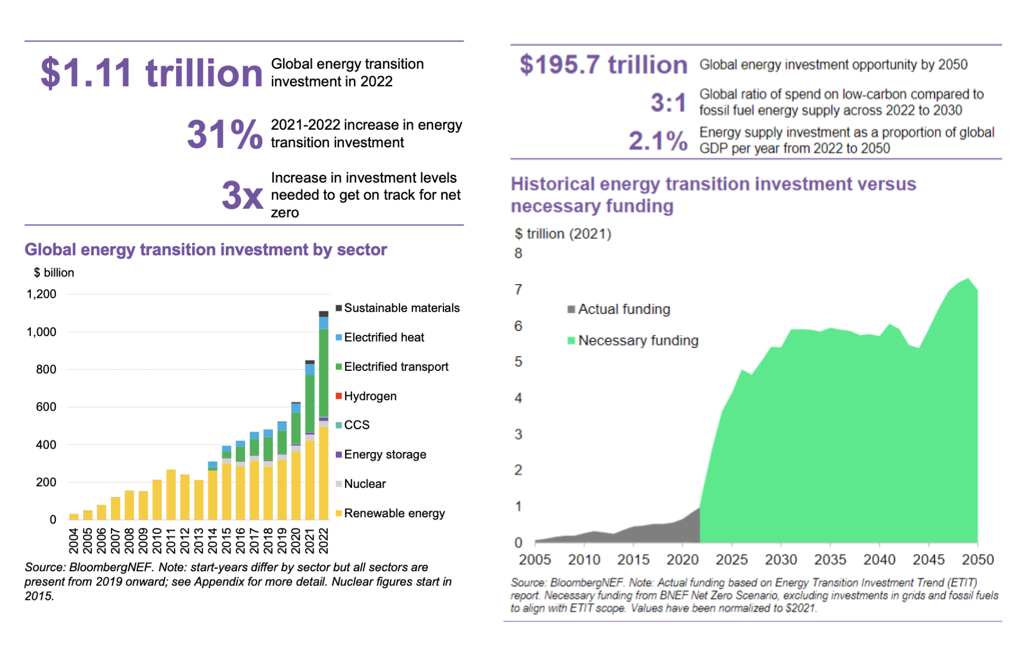 Working to decarbonize society is the opportunity of a lifetime—a call to help billions of humans and the natural world in foundational ways. Plus, you can be on the receiving end of perhaps the most massive flow of capital in history. While we’ve ramped our global investment in the clean-energy transition to over $1.1T annually in 2022, our models for hitting net-zero by 2050 require us to grow this to $7T+ per year. That’s equivalent to the entire United States budget, every single year, spent globally on investment in a new energy economy.