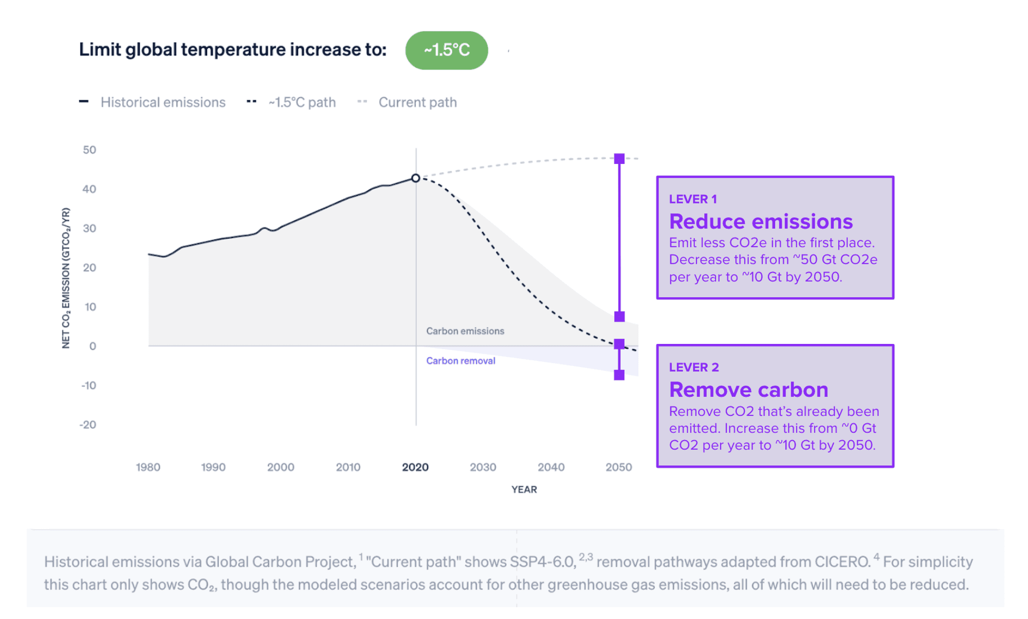 We need to achieve the goal above and adapt to the changes currently occurring or expected to occur, even on a 1.5C path. In other words we need to 1) reduce emissions, 2) remove carbon, and 3) adapt to changes. John Doerr has built a plan and evergreen OKR tracker covering our progress in achieving Lever 1 and 2 at Speed & Scale including accelerating factors: